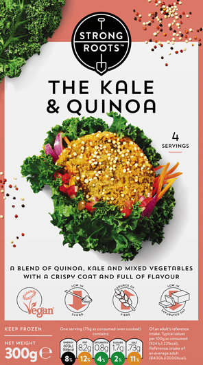 Strong RootsIndividually quick frozen pumpkin and spinach bites coated in a quinoa crumb.