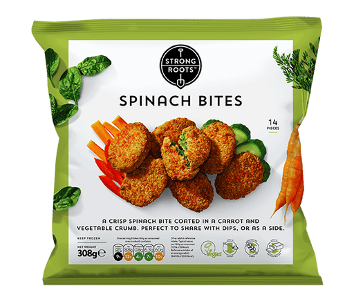 Strong RootsSpinach bites wrapped up in a carrot and vegetable crumb A small (but perfectly formed) taste explosion. Low in Sugar and Saturated Fat. Source...