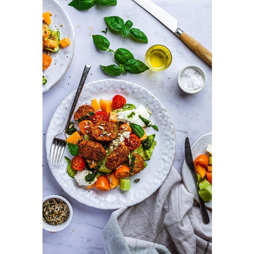 The Mighty KitchenA flavourful, plant-based falafel, crafted from high-quality chickpeas, fresh vegetables, and aromatic spices. With a unique blend of grilled auber...